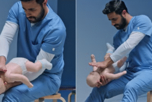 Para bebês com menos de 1 ano, a orientação também foi revista. O procedimento agora alterna cinco pancadas firmes nas costas com cinco compressões torácicas no centro do peito, usando a base da palma da mão. A compressão abdominal segue proibida nesta faixa etária, por risco de lesões internas graves.