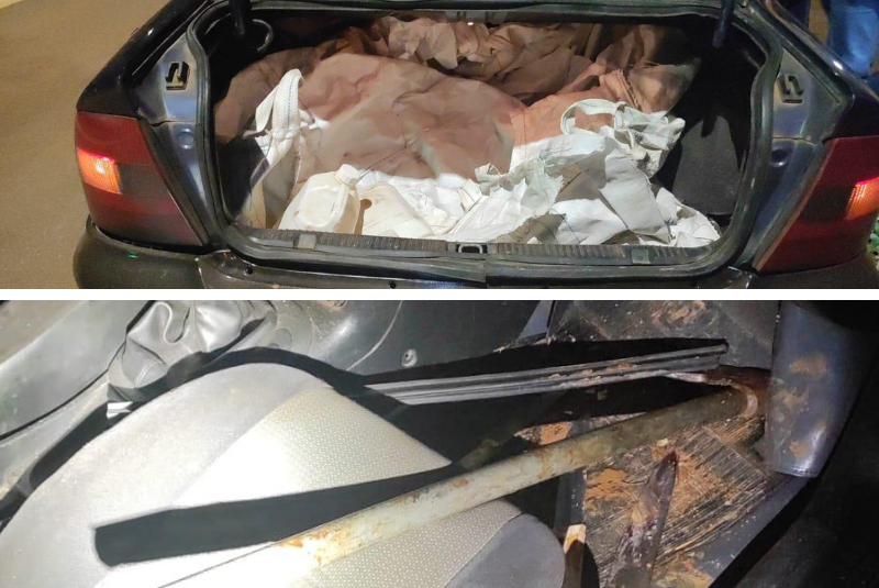 Dentro do carro — um GM Vectra azul — foram encontradas três facas sujas de sangue, um machado, lanternas, sacos plásticos para transporte da carne e celulares. Todo o material foi apreendido, assim como o veículo.