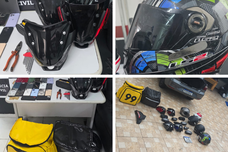 O primeiro contato ocorreu quando a Guarda Municipal foi acionada devido a um som alto em uma residência. A Polícia Militar também foi solicitada, e, ao chegarem ao local, encontraram os dois indivíduos tentando fugir. Em um quintal da residência, onde estavam escondendo as peças, foram localizados diversos itens furtados. Entre os objetos apreendidos, estavam cinco capacetes, quatro peças frontais de motocicletas, sete painéis, uma carenagem, uma placa de veículo, além de diversas ferramentas, aparelhos celulares e até mesmo um automóvel.